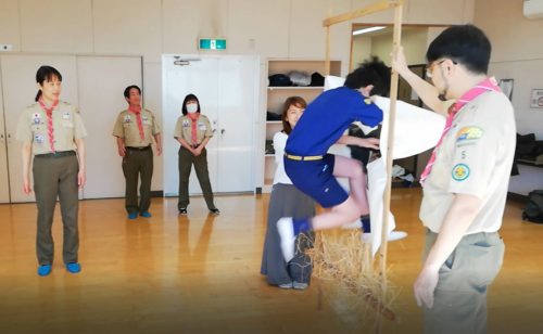 2019年の旗揚式も例年通り、氏神様の松戸神社で祈祷をしてもらってから スカウトハウスで旗揚式のセレモニーと全体ゲーム、お餅つきをしました。